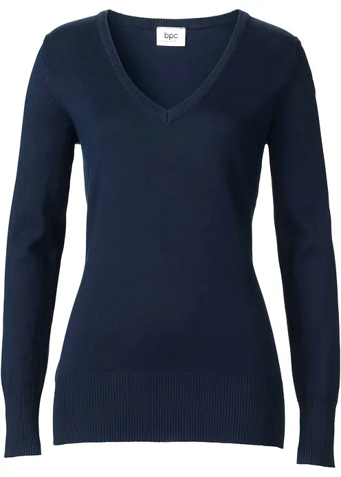 Das bequeme Feinstrick-Material und der klassisch figurbetonte Schnitt machen diesen V-Pullover zum tollen Begleiter für die Freizeit. Der tiefe Ausschnitt sorgt für einen legeren und natürlichen Look.Das Bündchen und die Ärmelsäume sind schön breit und wirken unaufdringlich und lässig. In Kombination mit sportlichen Cargo-Hosen oder ausgestellten Röcken sieht dieser V-Pullover von bpc einfach am besten aus.