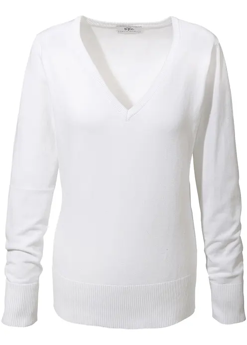 Das bequeme Feinstrick-Material und der klassisch figurbetonte Schnitt machen diesen V-Pullover zum tollen Begleiter für die Freizeit. Der tiefe Ausschnitt sorgt für einen legeren und natürlichen Look.Das Bündchen und die Ärmelsäume sind schön breit und wirken unaufdringlich und lässig. In Kombination mit sportlichen Cargo-Hosen oder ausgestellten Röcken sieht dieser V-Pullover von bpc einfach am besten aus.