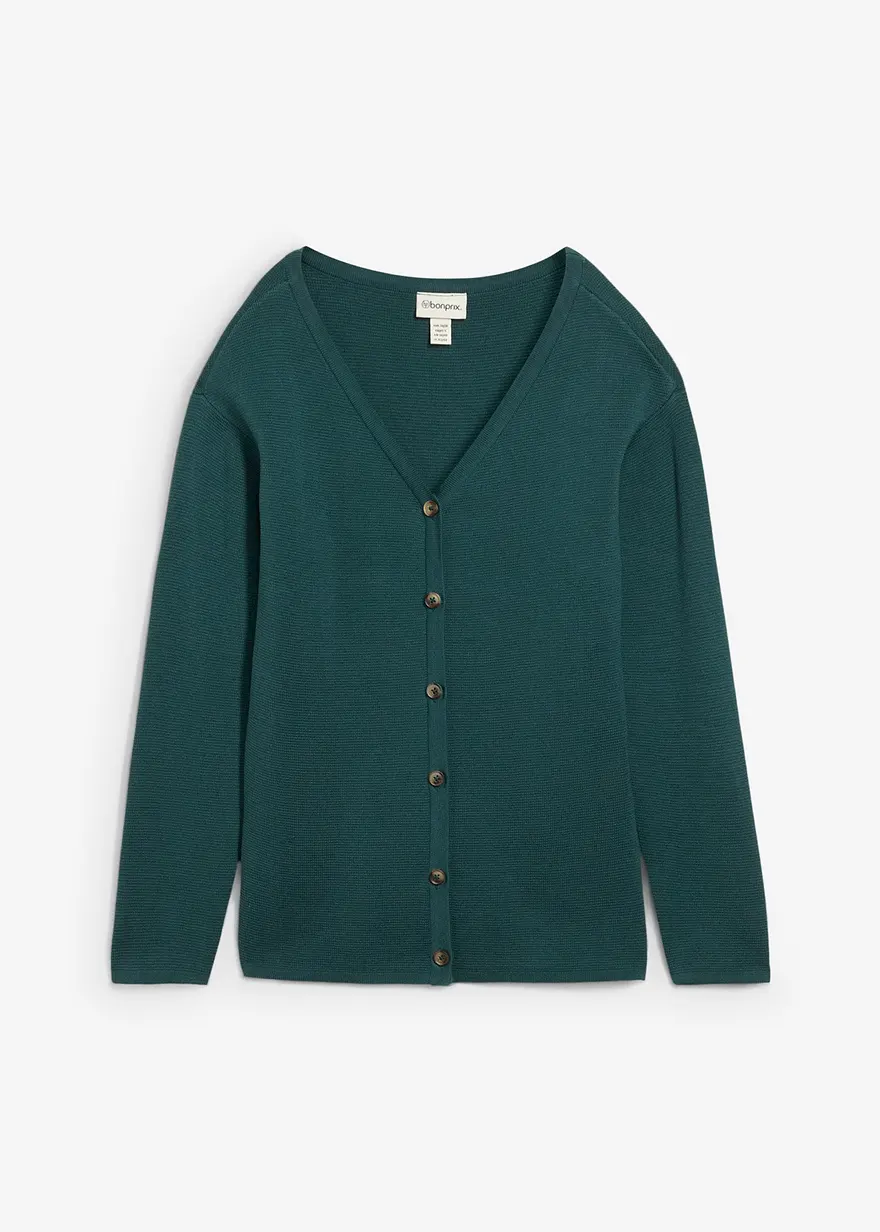 zeitlose Strickjacke aus Milano Strick mit Knöpfen in edler Hornoptik
