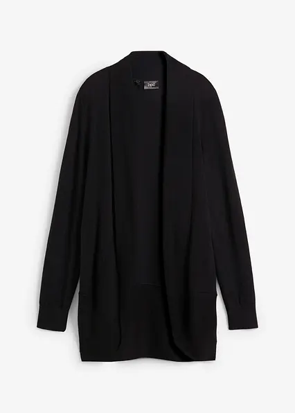 Diese legere Strickjacke aus der aktuellen Kollektion von bpc überzeugt durch hohen Tragekomfort und einen ausgefallenen Schnitt: Die bequeme Jacke hat lange Ärmel mit feinen Ripp-Bündchen und einen abgerundeten Saum.Sie wird offen getragen und lässt sich am besten zu figurbetonten T-Shirts, Tops und engen Hosen kombinieren.