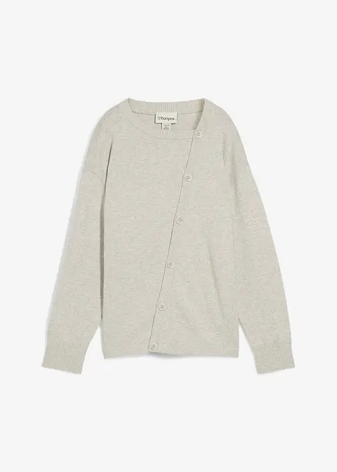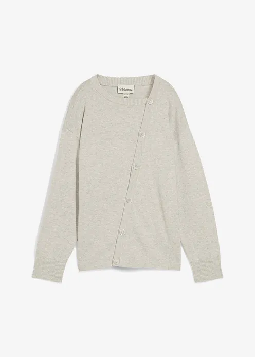 Langarm Strickpullover mit asymmetrischer Knopfleiste mit farblich passenden Knöpfen und gerippten Abschlüssen