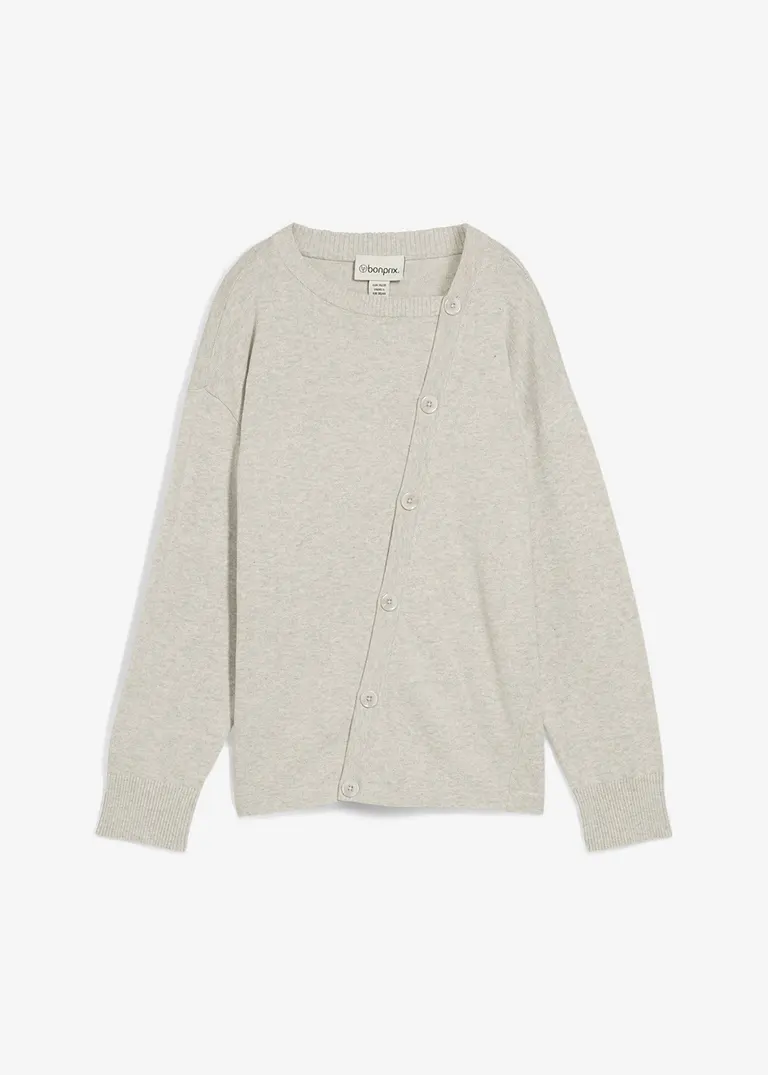 Feinstrickpullover mit asymmetrischer Knopfleiste