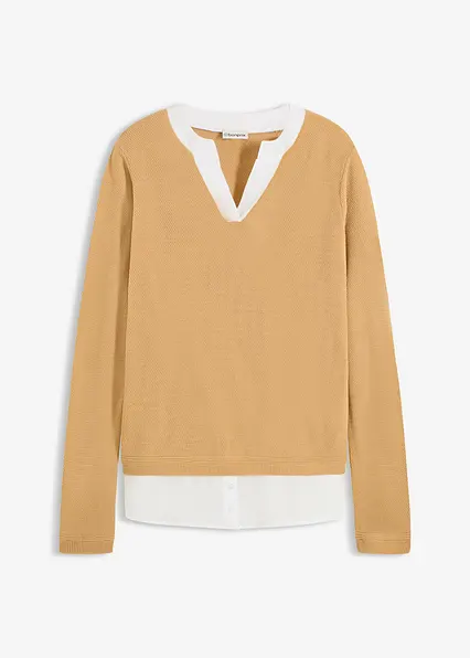 Langärmliger Pullover mit Bluseneinsatz und interessanter Ausschnittgestaltung