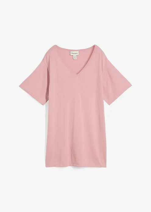 Feinstrick-Shirt aus einer Baumwollmischung. Kurzärmliger Style in weiter Passform V-Ausschnitt und Seitenschlitzen.