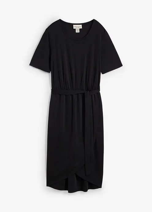 figurbetontes Jerseykleid aus softem Viskose-Mix in schwarz von vorne - bonprix