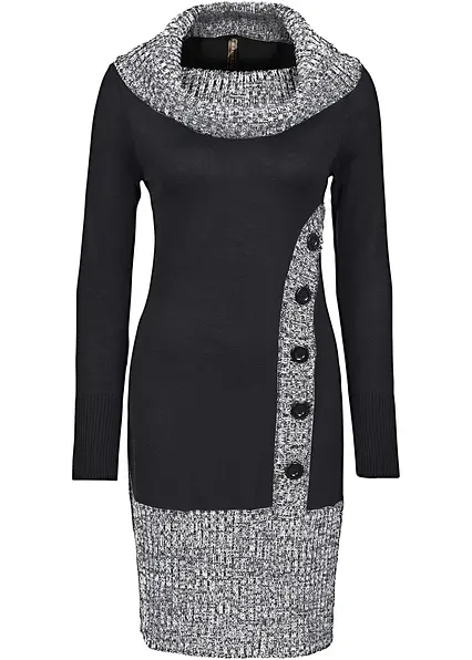 Figurbetontes Strickkleid mit Schalkragen in schwarz - bonprix