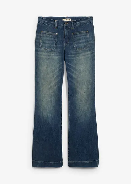 Flared-Jeans Mid Waist in blau von vorne - bonprix