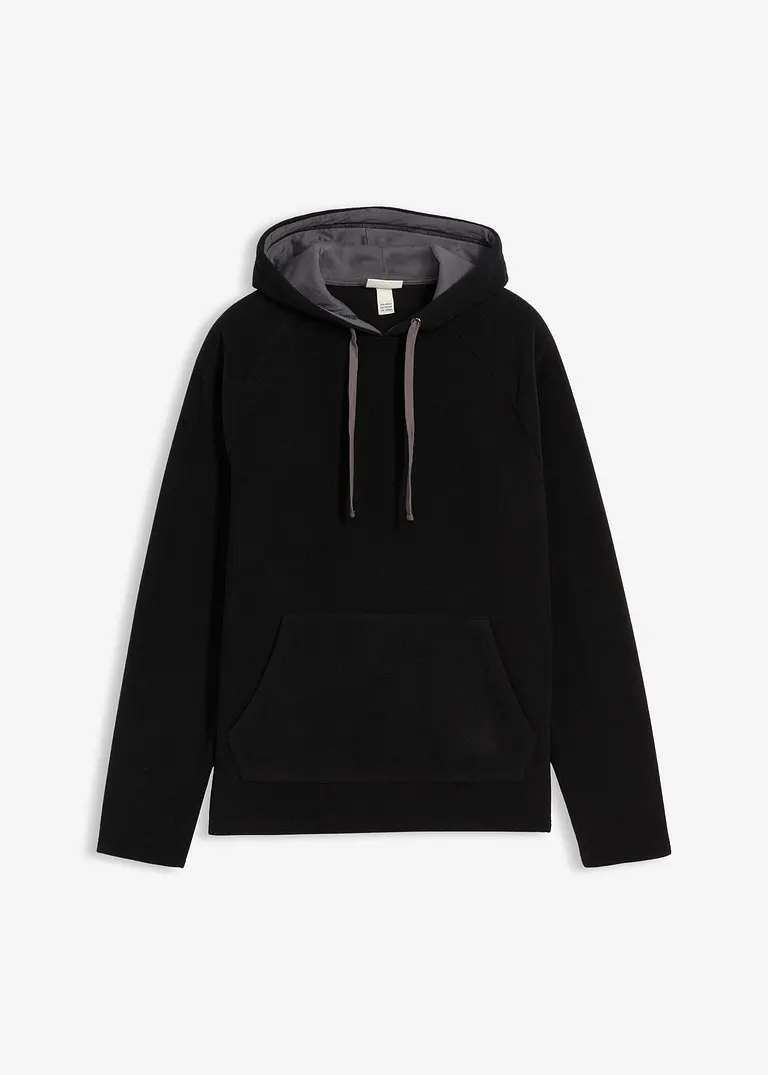 Fleecepullover mit Kapuze in schwarz von vorne - bonprix
