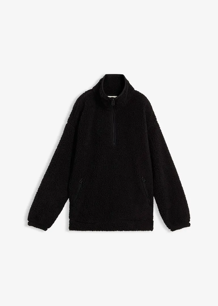Oversize- Fleeceshirt mit Stehkragen und Reißverschluss