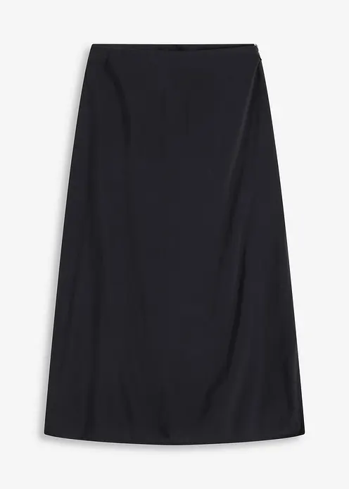 Midi-Rock aus fließender Viskose in schwarz von vorne - bonprix