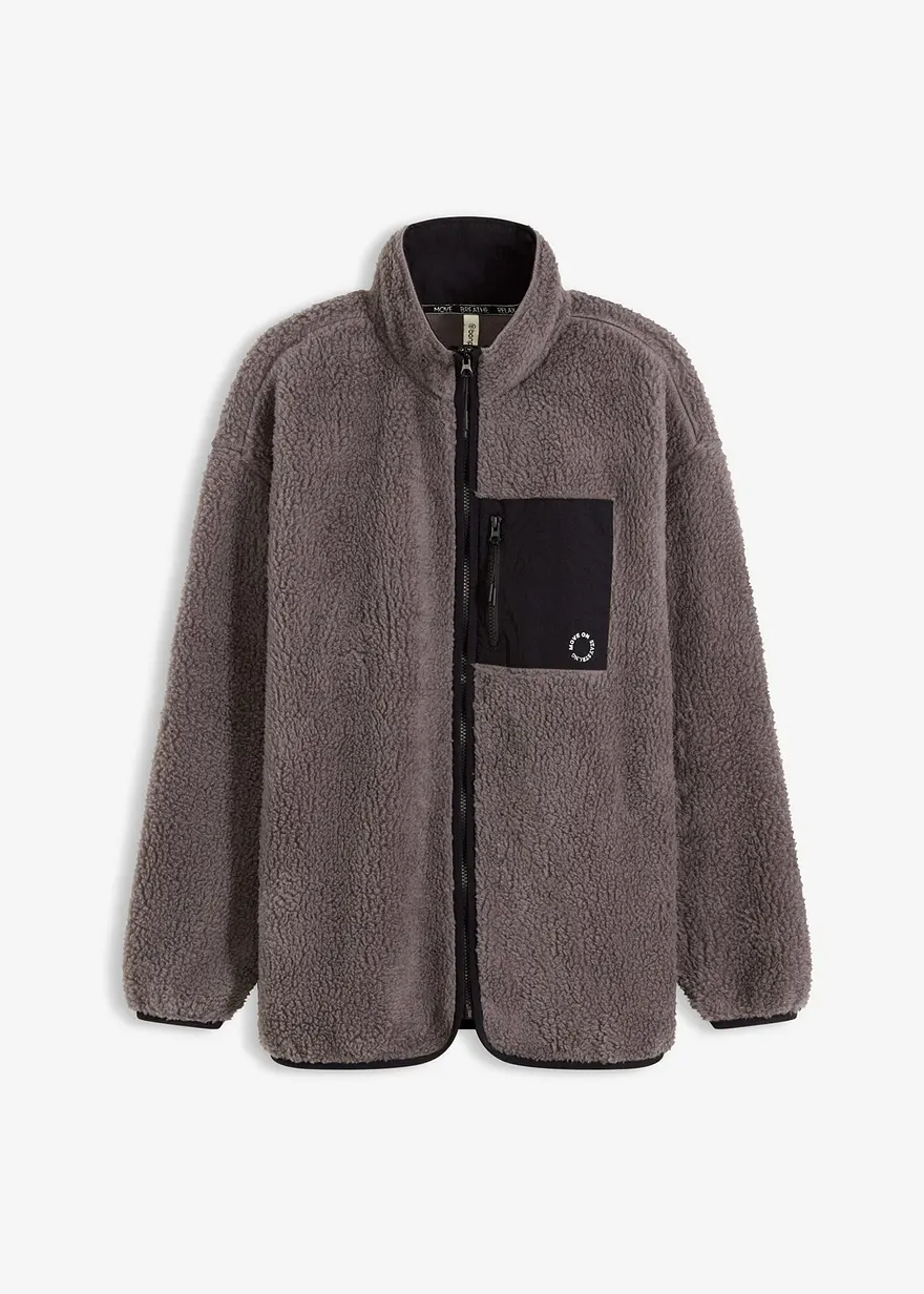 Teddy Fleece Funktions-Sportjacke mit einer Brusttasche im modernen oversized Schnitt, wodurch ein hoher Trage-und Bewegungskomfort geboten wird
