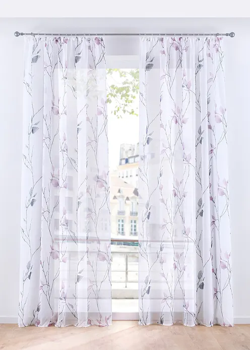 Wie ein Aquarell wirkt der florale Druck auf unserer transparenten Gardine. Die zarten Farben und die Transparenz der Gardine lassen das Zimmer hell und freundlich erscheinen. Sie ist aus pflegeleichtem Voile-Gewebe.