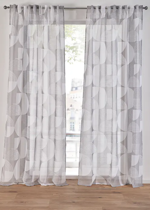 Die Gardine besticht durch ihr modernes Design und das zarte Strukturgewebe. Die Farben sind topaktuell und Du kannst die Gardine in jeden Raum dekorieren.