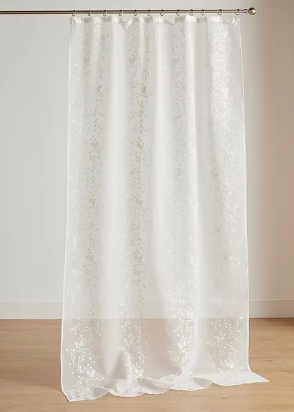 Diese Fertiggardine wird zum Highlight an deinen fenstern. Sie hat eine verspielte Stickerei und und ist aus feinem Gewebe gefertigt.