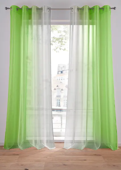 Ein toller Hingucker für deine Fenster: moderne Gardine mit einem frischen Farbenverlauf im praktischem 2er-Pack. Die Gardinen sind aus transparenter Voile-Qualität und lassen dadurch viel Tageslicht rein.