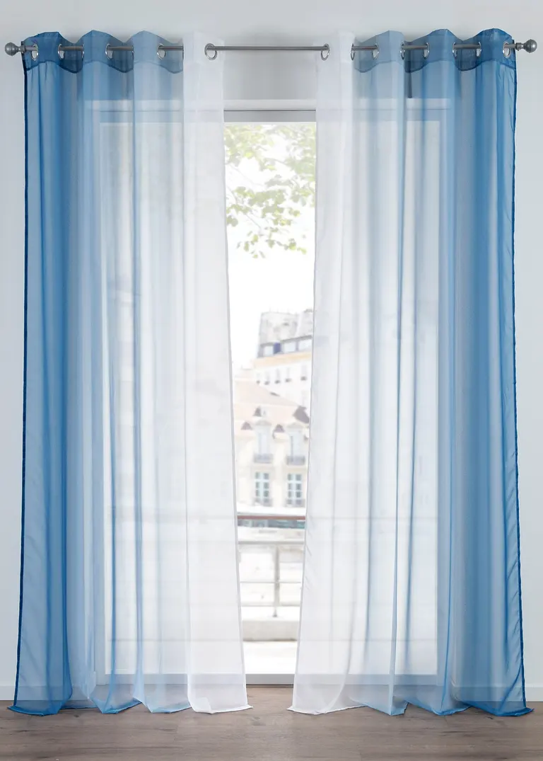 Ein toller Hingucker für deine Fenster: moderne Gardine mit einem frischen Farbenverlauf im praktischem 2er-Pack. Die Gardinen sind aus transparenter Voile-Qualität und lassen dadurch viel Tageslicht rein.