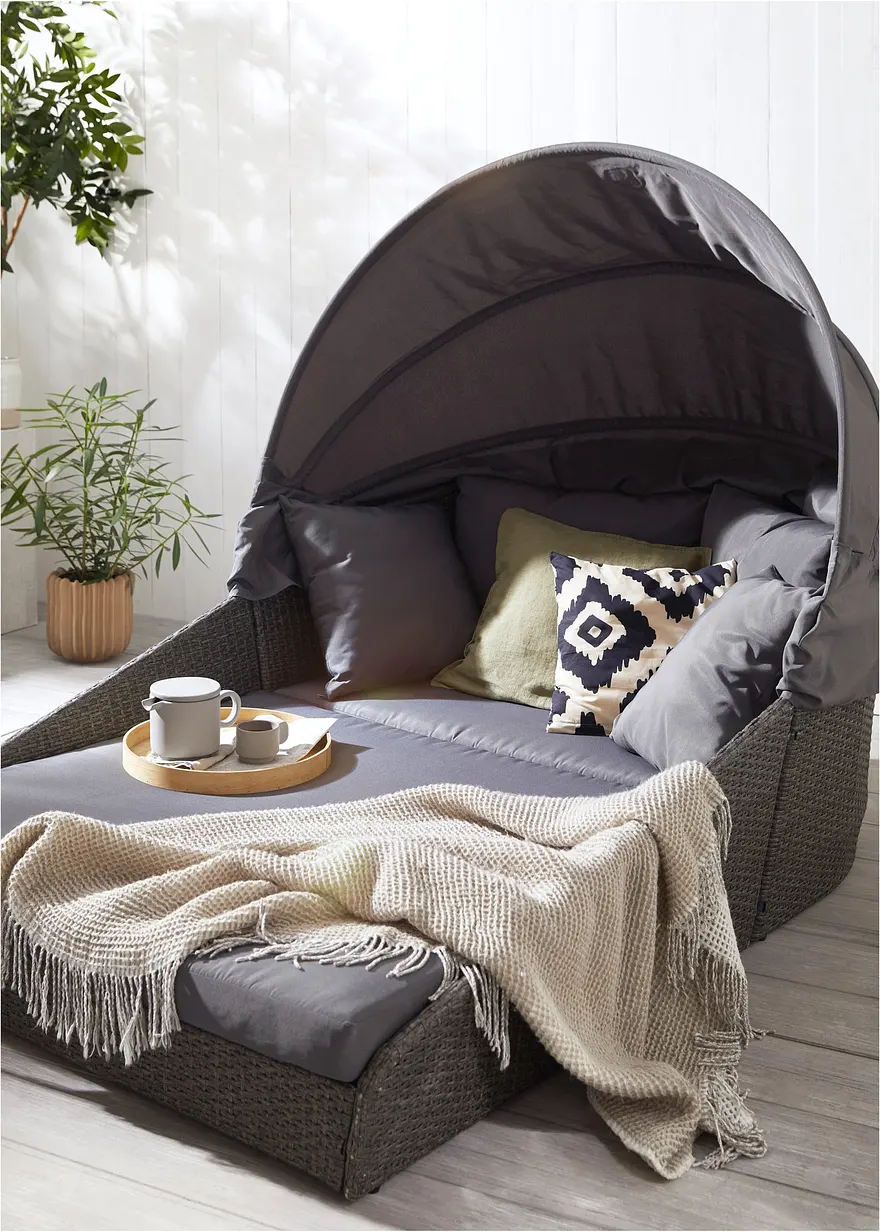 Gemeinsam im Garten entspannen: Gartenliege mit Faltdach