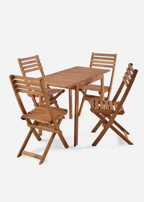 Bringe den Charme der Natur in Deinen Außenbereich mit unserem rustikalen Gartenset. Dieses praktische Set besteht aus einem robusten Tisch und vier klappbaren Stühlen, ideal für gesellige Zusammenkünfte mit Freunden und Familie. Der kompakte Tisch mit klappbarer Tischplatte bietet ausreichend Platz für Mahlzeiten und Getränke, während die klappbaren Stühle Flexibilität und einfache Lagerung ermöglichen.