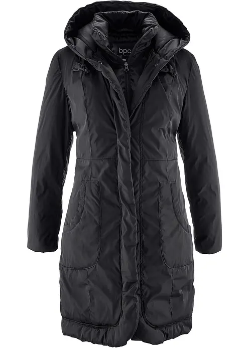 Mit diesem Mantel der Marke bpc sind Sie in der kalten Jahreszeit warm angezogen. Er überzeugt mit einer guten Fütterung und einer figurumspielenden Passform. Ein besonderer Hingucker ist die verspielte 2-in-1-Optik: Innen ist das Modell per Reißverschluss zu schließen, außen mit Knöpfen.Der gefütterte Mantel zeichnet sich durch eine weitenregulierbare Kapuze und einen Stehkragen aus.