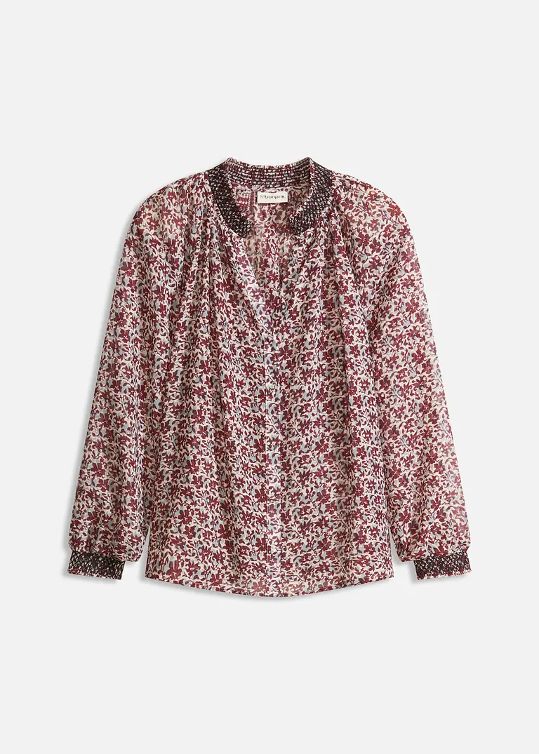 Gemusterte Chiffon-Bluse mit Stickerei