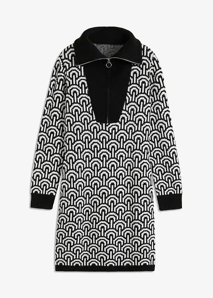 Strickkleid mit Troyer-Kragen und Jacquardmuster