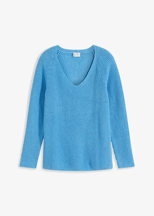 Ripp-Pullover mit V-Ausschnitt