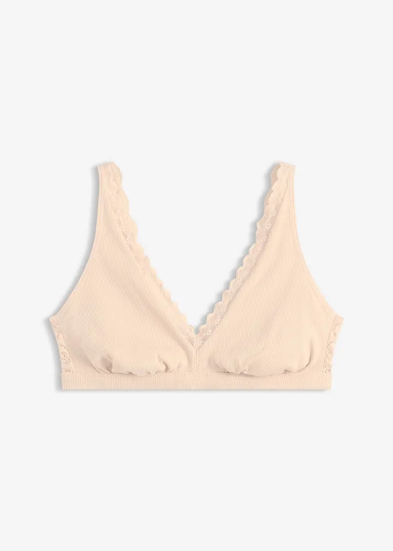 Geripptes Bralette mit Bio-Baumwolle und Spitze