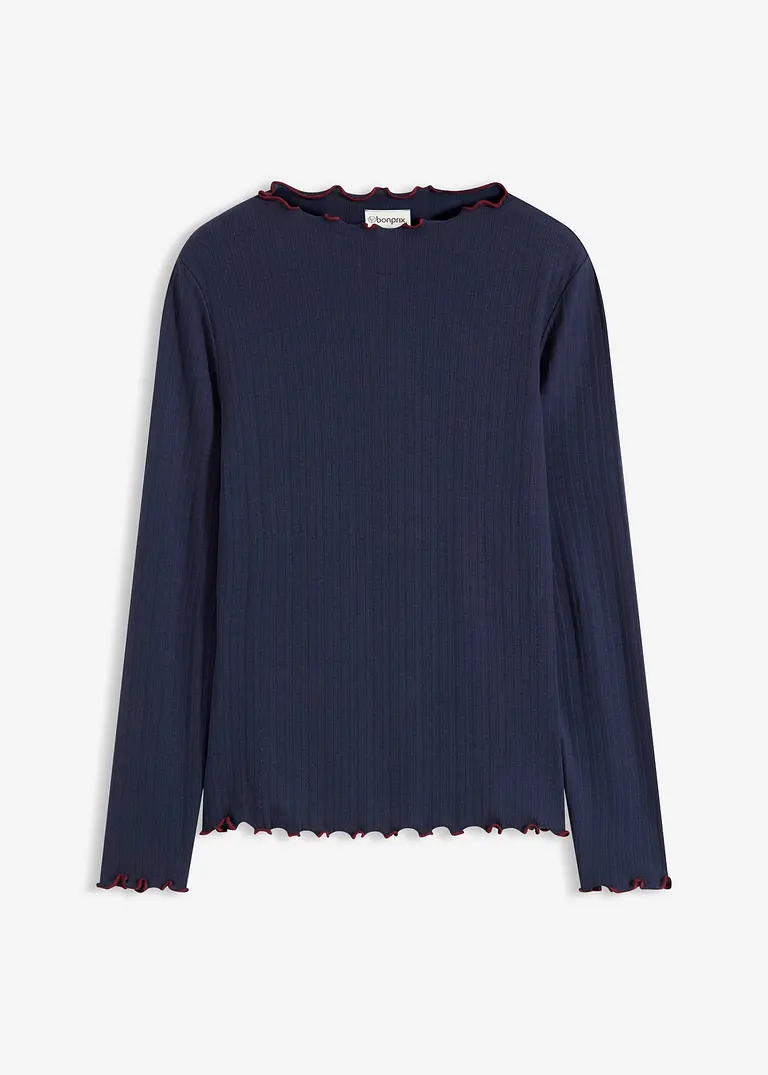 Geripptes Langarmshirt in blau von vorne - bonprix