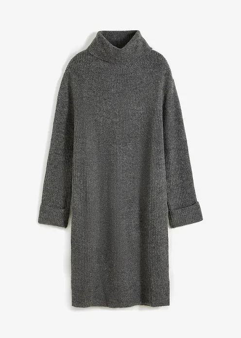 Figurumspielendes Strickkleid umschließt den Hals durch den Rollkragen aus Rippstrcik