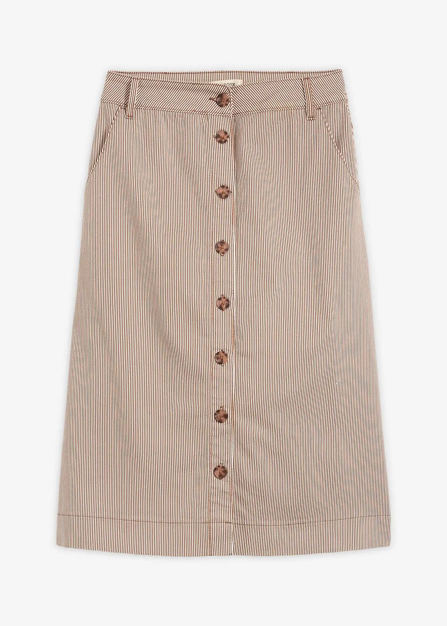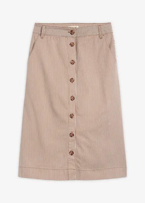gestreifter Midirock mit Knopfleiste