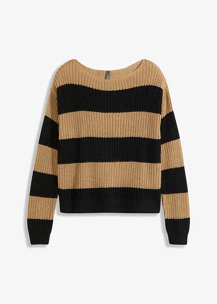 Lässiger Strickpullover mit Streifen und U-Boot Ausschnitt