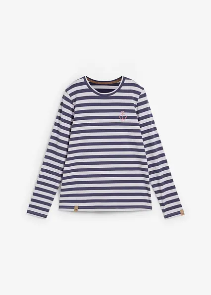 Gestreiftes Langarmshirt mit Stickerei