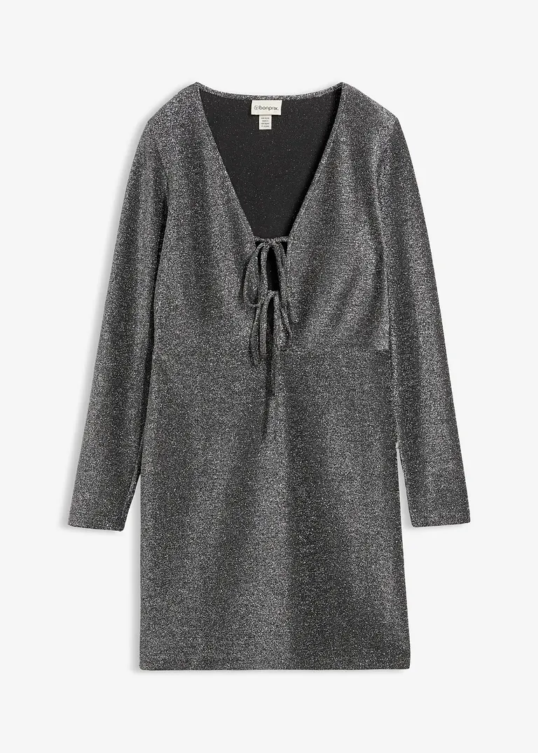 Modisches Minikleid mit Schleifendetail in Glitzeroptik und langen Ärmeln