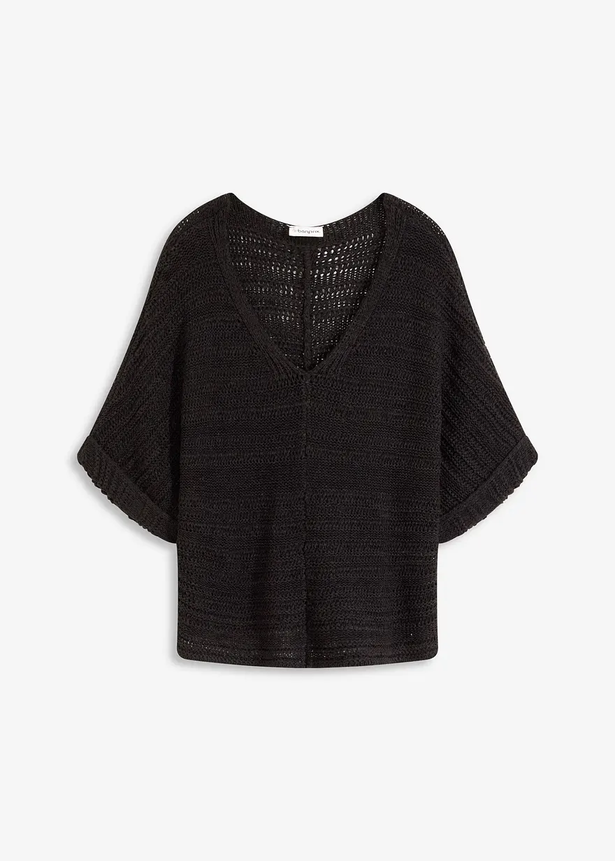 Grobstrick-Pullover aus Bändchengarn in schwarz von vorne - bonprix