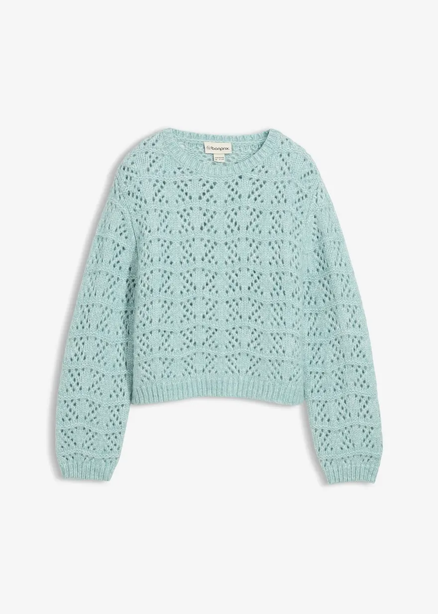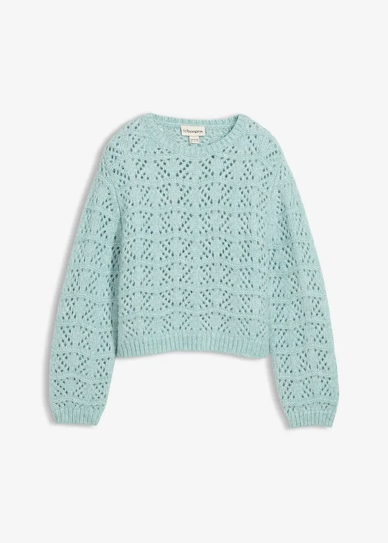 Luftiger Grobstrick-Pullover mit Lochstickerei für Mädchen