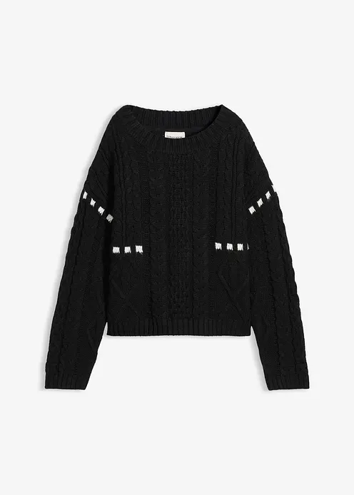 Grobstrick-Pullover mit Zopfmuster