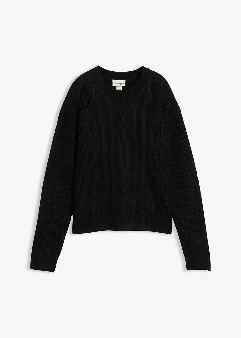 Lässiger Grobstrick-Pullover mit Zopfmuster und Cut-Outs