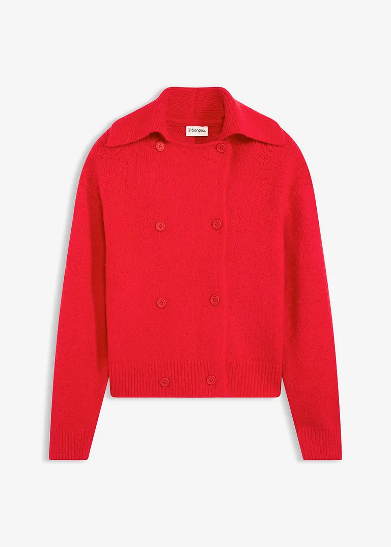 Moderne Strickjacke mit doppelreihiger Knopfleiste und Kragen