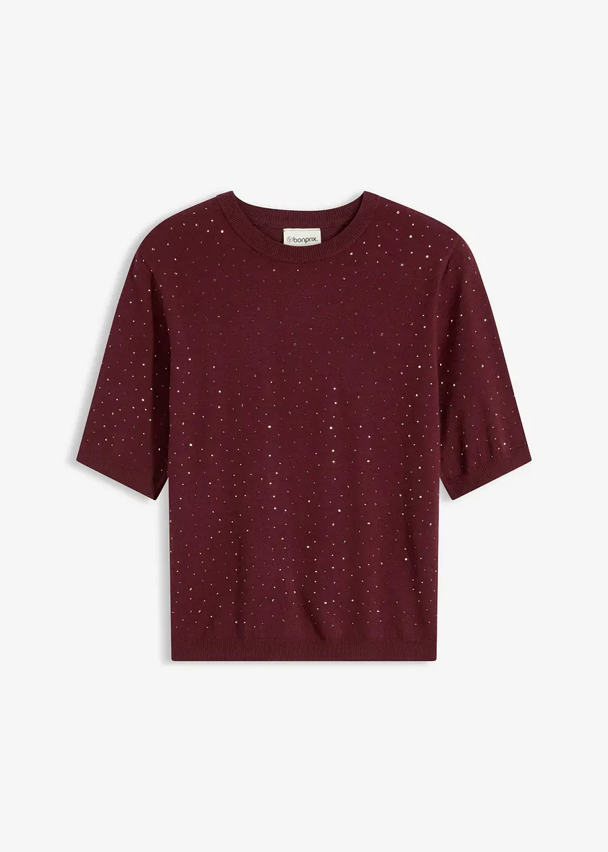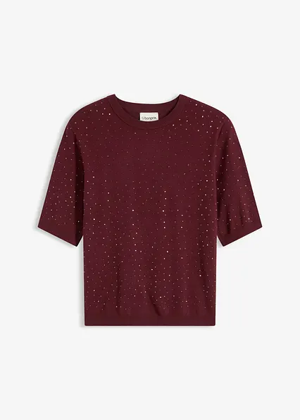 Halbarm Feinstrickpullover mit Glitzersteinchen