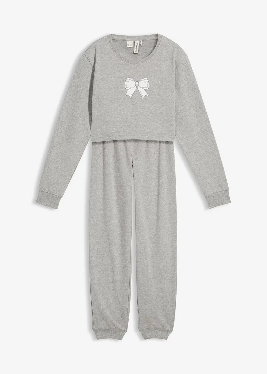 Bequemer Hausanzug mit einem Sweatshirt in cropped Optik und langen Ärmeln, Dazu eine weiche Sweathose.