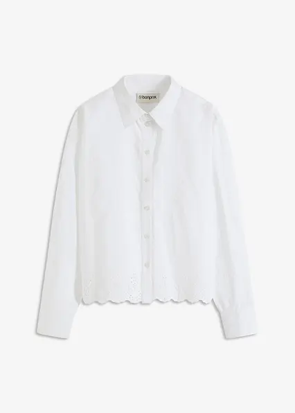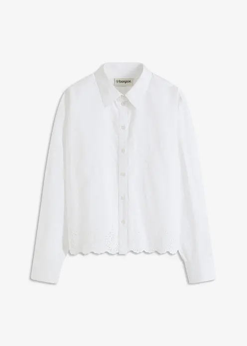 Hemdbluse aus reiner Baumwolle in weiß von vorne - bonprix