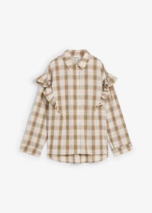 Modische Hemdbluse mit Volants am Ärmel, kariert