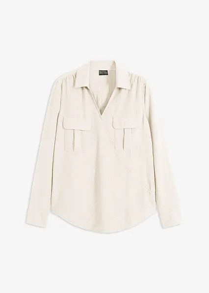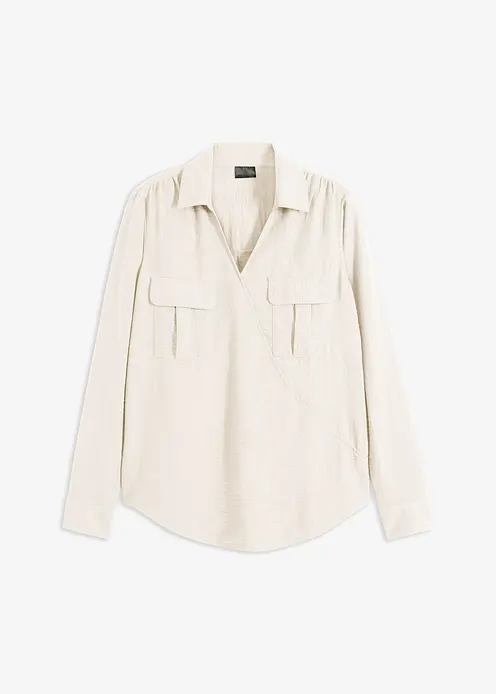 Charmante Bluse in Wickeloptik mit aufgesetzten Taschen