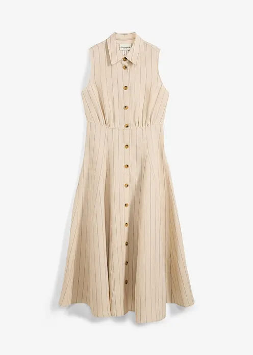 Hemdblusenkleid aus reinem Leinen in beige von vorne - bonprix