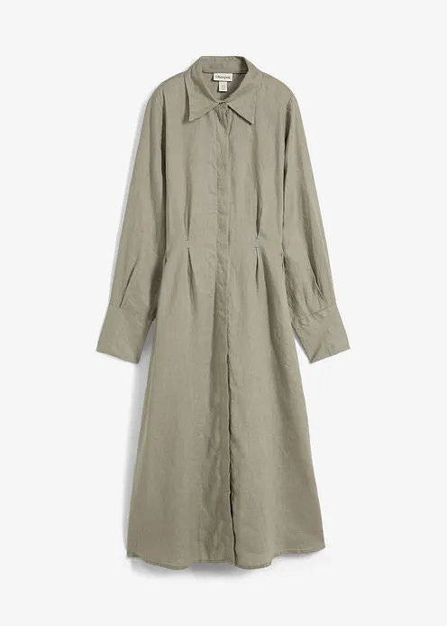 Hemdblusenkleid aus reinem Leinen in grün von vorne - bonprix