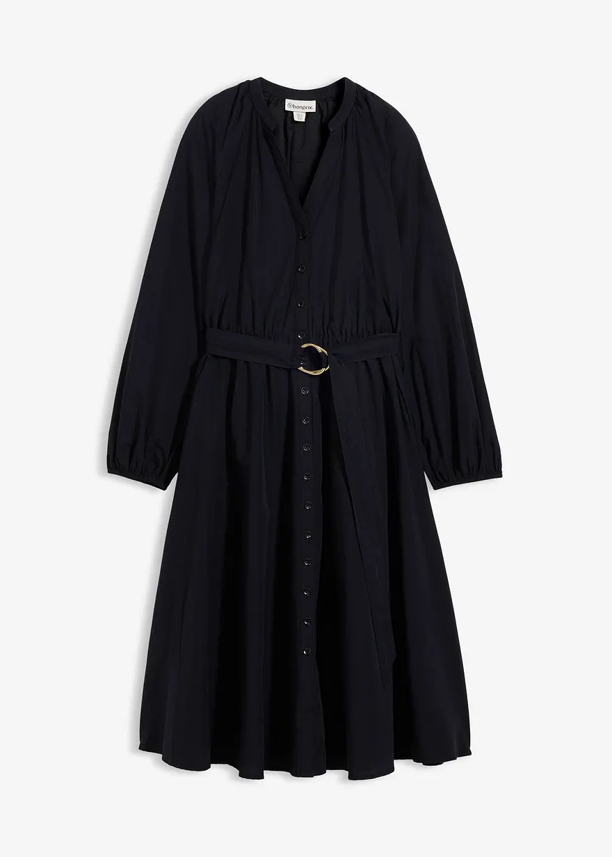 Hemdblusenkleid aus Seiden-Anteil und Gürtel