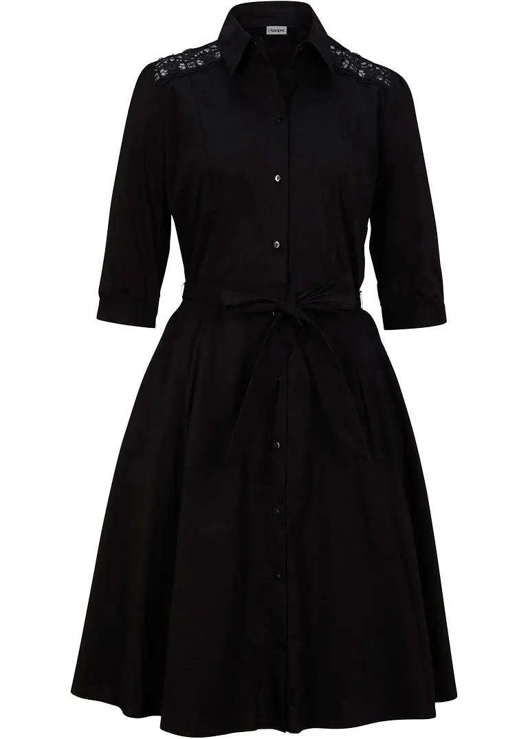 Hemdblusenkleid mit Spitze und Bindeband