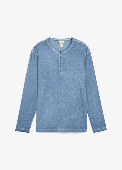 Henleyshirt, Langarm in gewaschener Optik aus reiner Bio-Baumwolle