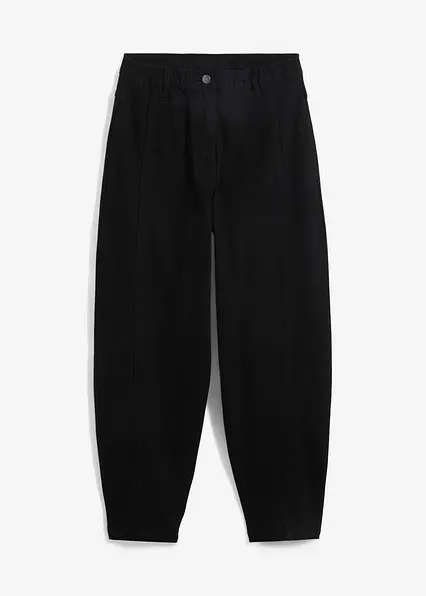 High Waist Barrel-Twillhose mit vorverlegten Seitennähten und Bequembund