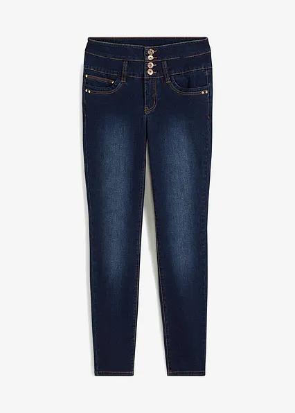 Feminine Skinny Jeans mit hoher Taille und auffälliger Knopfleiste